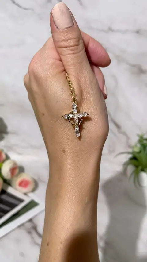Elevate your everyday style with a piece that carries meaning. The Crowned Cross Necklace features a radiant cross design adorned with shimmering stones and crowned details that symbolize faith, protection, and divine strength. Set on a delicate gold-toned chain, it catches the light beautifully while keeping its look soft and feminine.